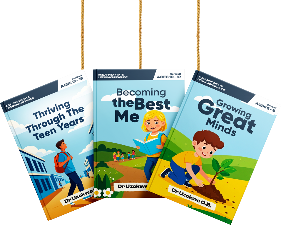 This three-part series, written by Dr. CB Uzokwe, is more than just books—it’s a guided journey for your child’s development. Each volume is meticulously crafted for a specific age group, addressing their unique challenges and opportunities. From building foundational habits in childhood to navigating the complexities of the teen years, this series provides the tools for parents and caregivers to have meaningful conversations and for kids to grow into confident, resilient, and self-aware individuals.